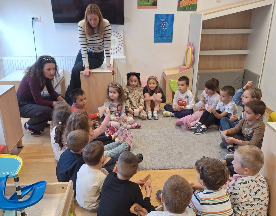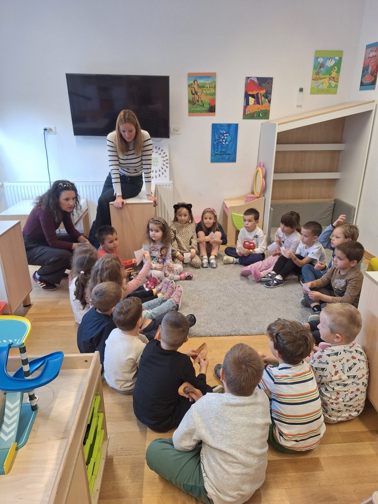 U ponedjeljak su djelatnice Obiteljskog centra posjetile naš vrtić te s predškolcima proveli veselu i poučnu radionicu “Jesenski kolaž osjećaja”. Cilj susreta je bio pomoći djeci da prepoznaju, imenuju i izraze emocije kroz igru, pokret i kreativno stvaralaštvo. Radionica je započela plesom, koji je unio mnogo smijeha i dobre energije među djecom. Nakon plesnog uvoda, uslijedio je razgovor o osjećajima – što nas veseli, što nas rastužuje, kako prepoznati kad je netko sretan ili tužan, te kako možemo jedni drugima pomoći kada se osjećamo loše. Zatim su djeca sudjelovala u zabavnoj igri, u kojoj su bila podijeljena u skupine, a […]