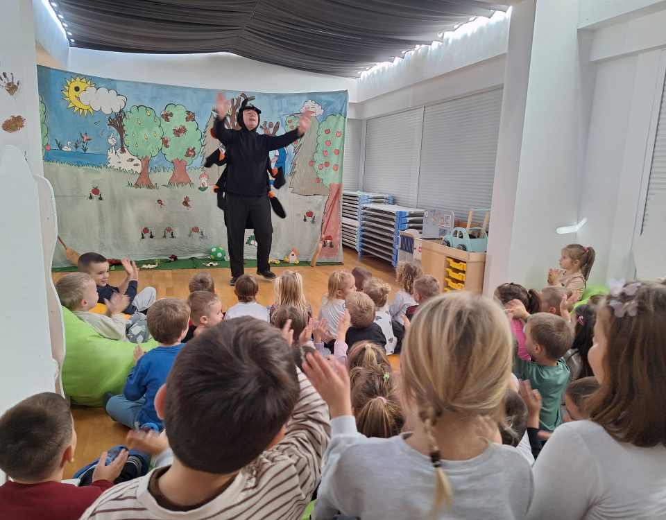 U petak smo u našem vrtiću ugostili Kazalište “Šareni svijet”, koje nam je priredilo veselu i poučnu predstavu. Uz puno glazbe, smijeha i dobre zabave djeca su kroz predstavu naučila važne poruke o prijateljstvu, zajedništvu i pomaganju.
