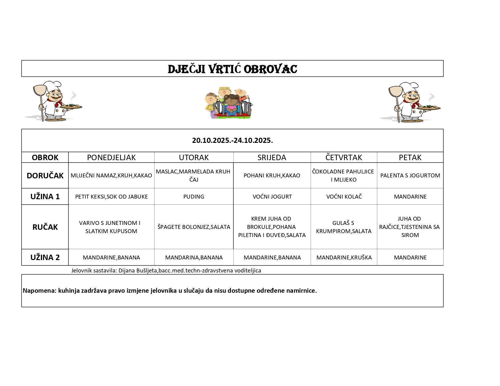 JELOVNIK OD 20.10. DO 24.10.2025. godine