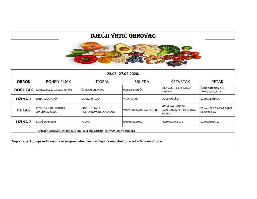 - JELOVNIK OD 23.2. DO 27.2.2026. godine