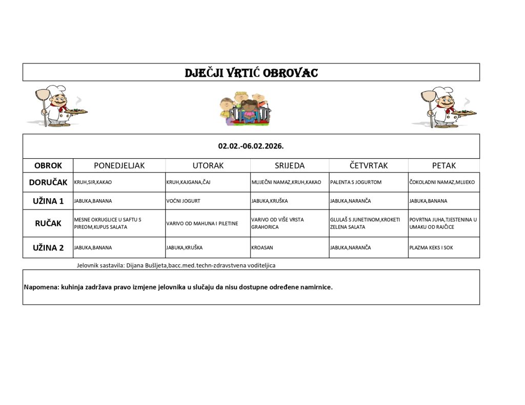 - JELOVNIK OD 2.2. DO 6.2.2026. godine