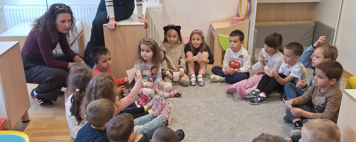 Radionica je započela plesom, koji je unio mnogo smijeha i dobre energije među djecom. Nakon plesnog uvoda, uslijedio je razgovor o osjećajima – što nas veseli, što nas rastužuje, kako prepoznati kad je netko sretan ili tužan, te kako možemo jedni drugima pomoći kada se osjećamo loše. Zatim su djeca sudjelovala u zabavnoj igri, u kojoj su bila podijeljena u skupine, a u svakom krugu zadatak im je bio imitirati određenu životinju. Na taj su način kroz pokret i glumu izražavali različite emocije, ali i razvijali suradnju, maštu i osjećaj zajedništva. Na kraju radionice uslijedilo je vrijeme za likovno izražavanje. U likovnom dijelu radionice djeca su zajednički izradila “stablo osjećaja”. Svako dijete izrezalo je i ukrasilo svoj list te na njemu nacrtalo osjećaj, koji je za njega važan. Nakon toga, svi su listovi spojeni na veliko stablo koje simbolizira raznolikost i bogatstvo dječjih emocija.