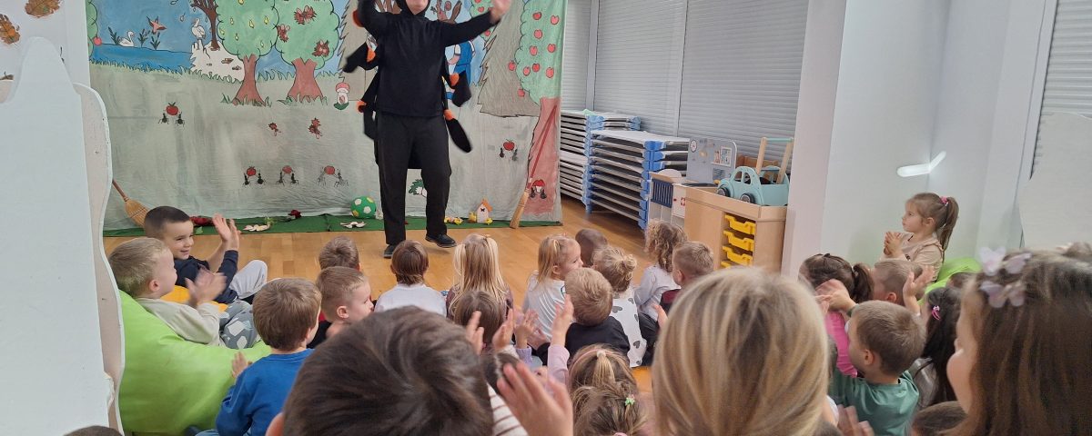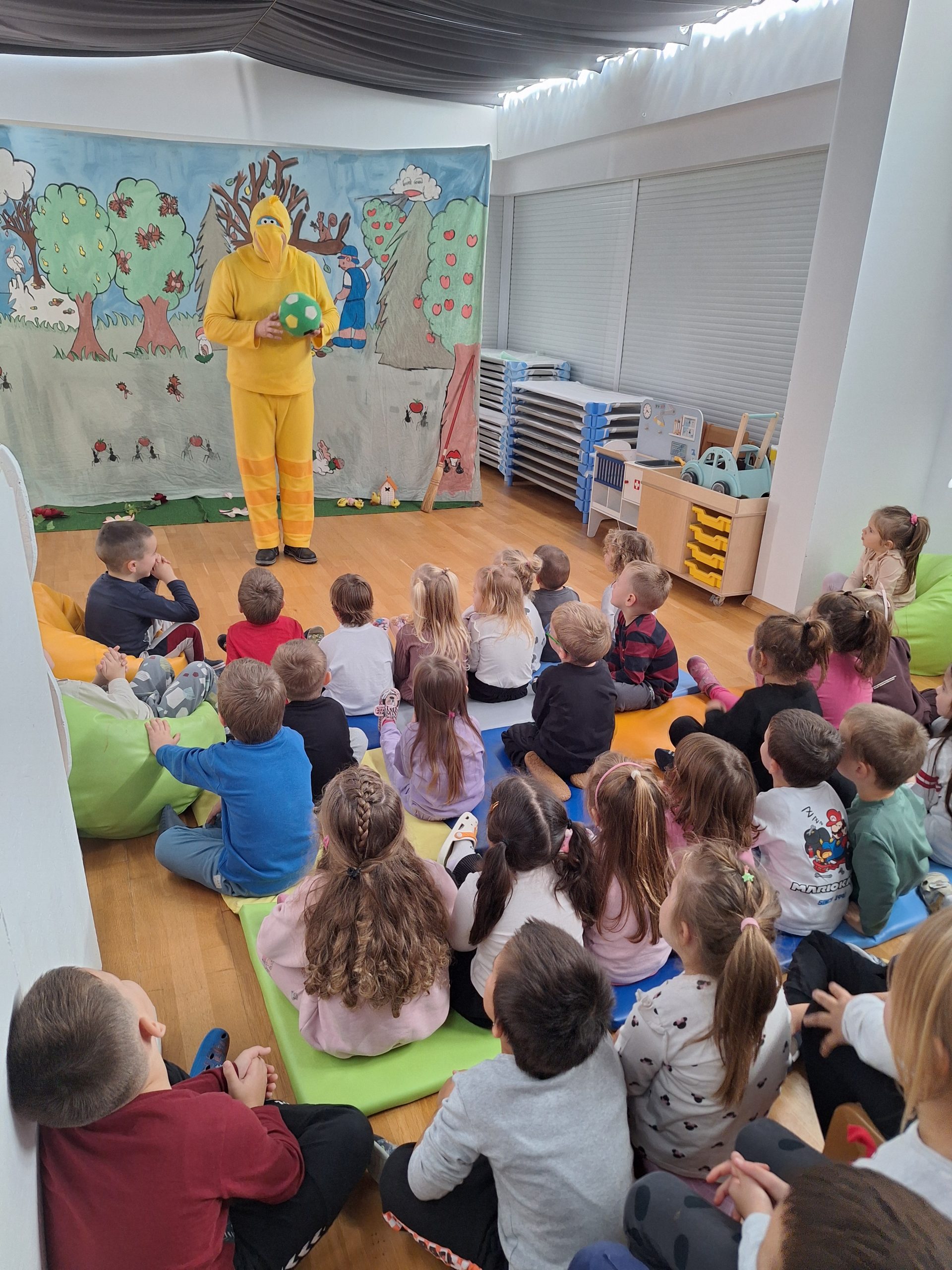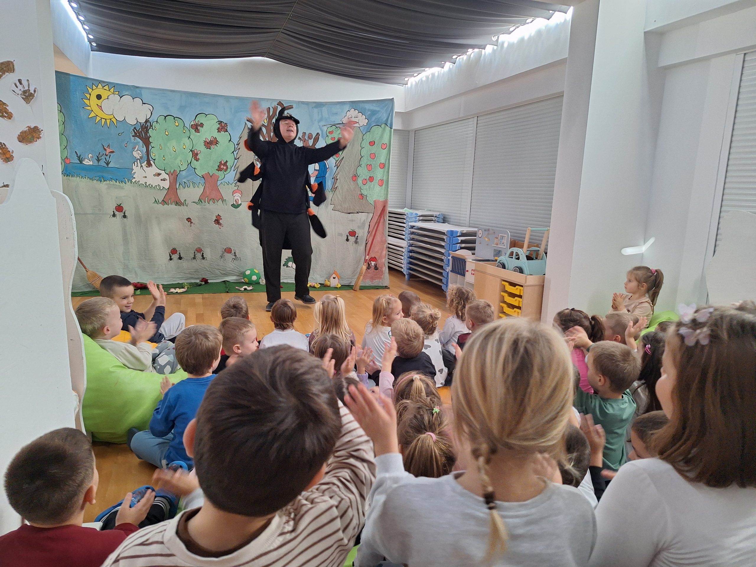 U petak smo u našem vrtiću ugostili Kazalište “Šareni svijet”, koje nam je priredilo veselu i poučnu predstavu. Uz puno glazbe, smijeha i dobre zabave djeca su kroz predstavu naučila važne poruke o prijateljstvu, zajedništvu i pomaganju.