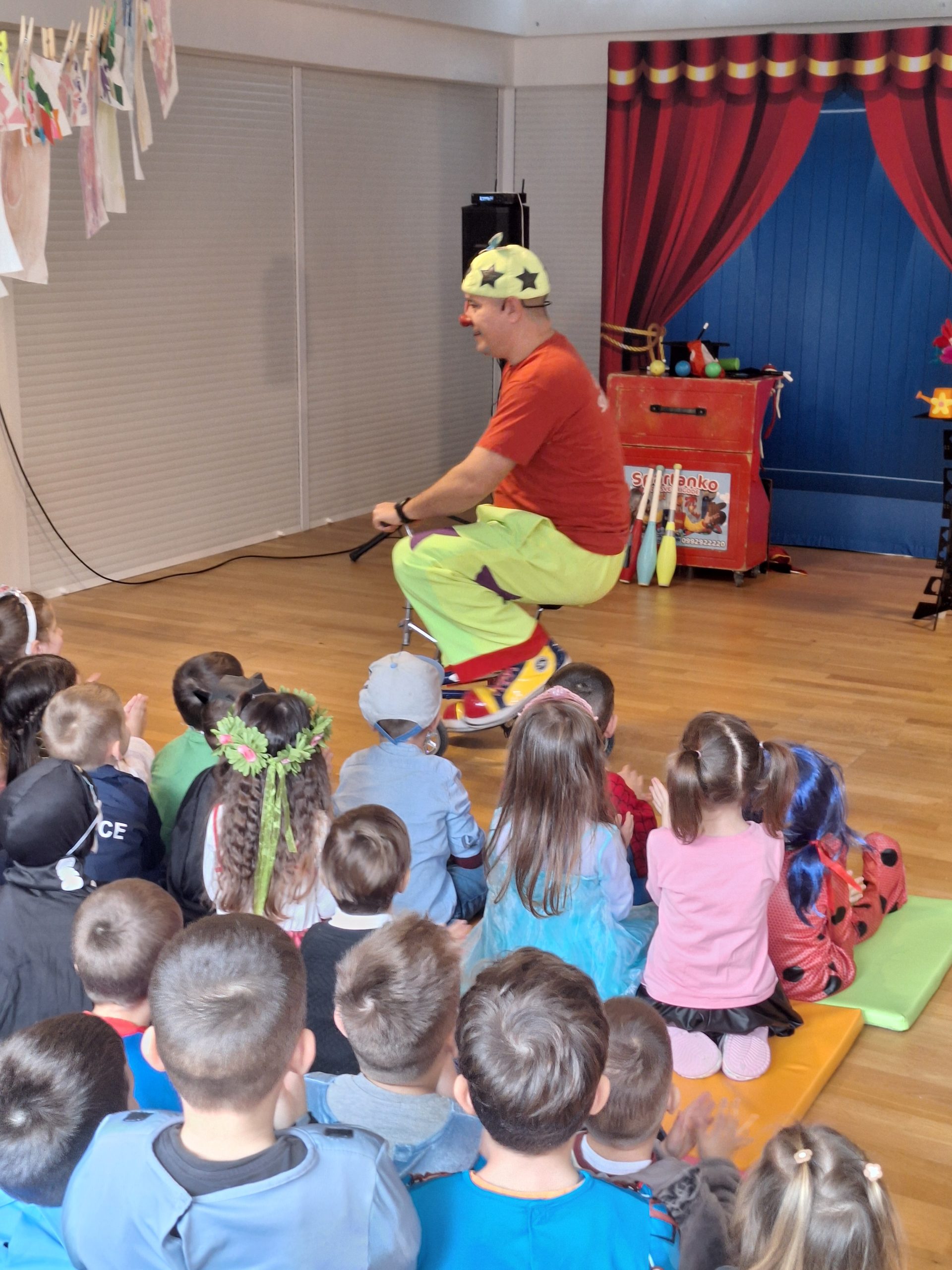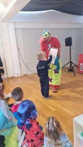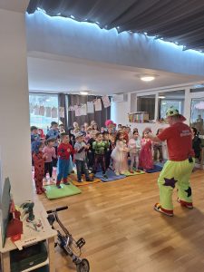 Danas je naš vrtić posjetio klaun Spartanko, koji je djeci priredio veselu i interaktivnu klaunsku predstavu “Spartanko Maskenbalko”. Kroz smijeh, ples, čarobne trikove i igre, djeca su aktivno sudjelovala u programu i s oduševljenjem pratila svaki trenutak predstave. Razigrana atmosfera i pozitivna energija klauna Spartanka uljepšale su nam dan i obogatile vrijeme maškara u našem vrtiću.